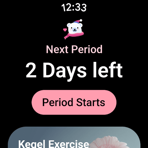 Period & ovulation prediction, water drinking reminders, and pill reminders are all available by setting up complications and tiles on your wear OS devices.